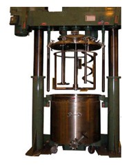 the entire mixing chamber can be elevated hydraulically. A hydraulic